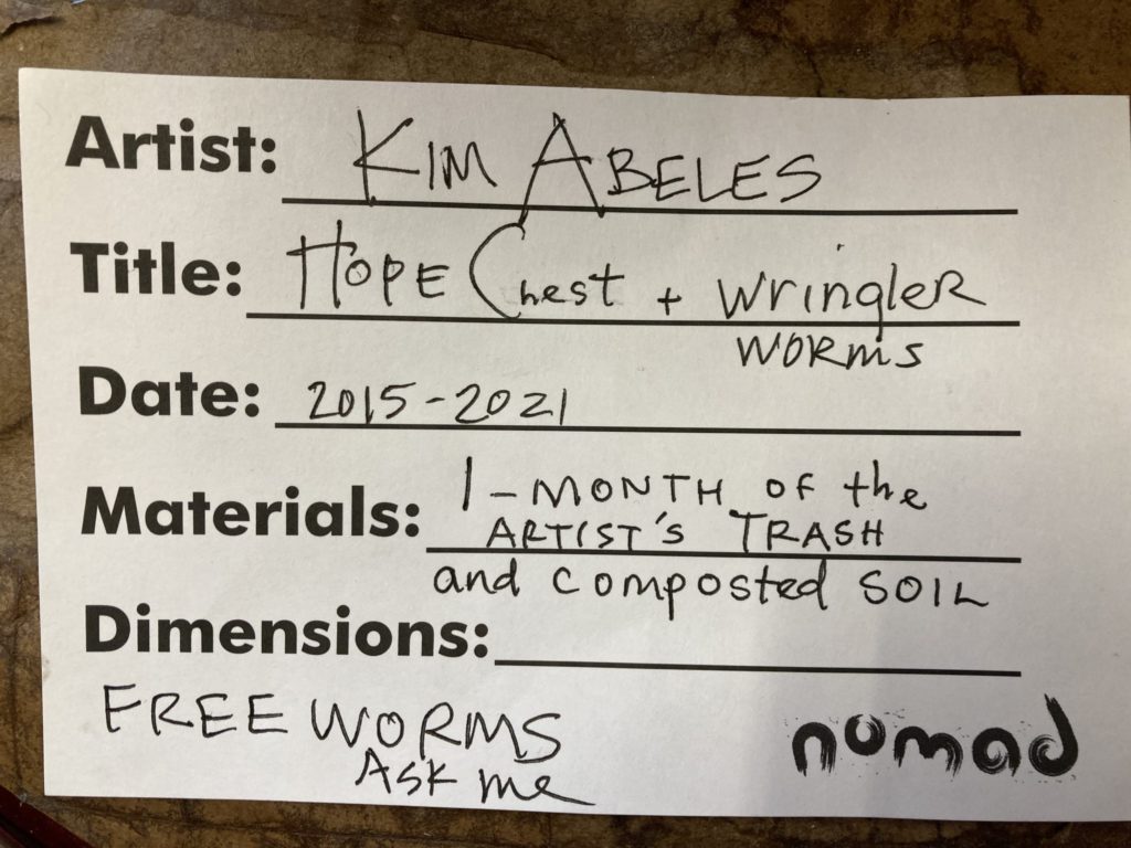 Kim Abeles (“Hope Chest and Wringler Worms”)