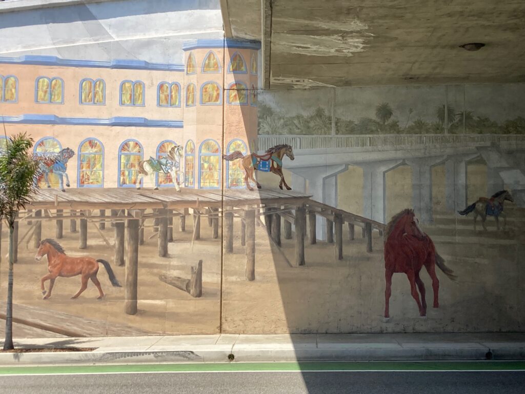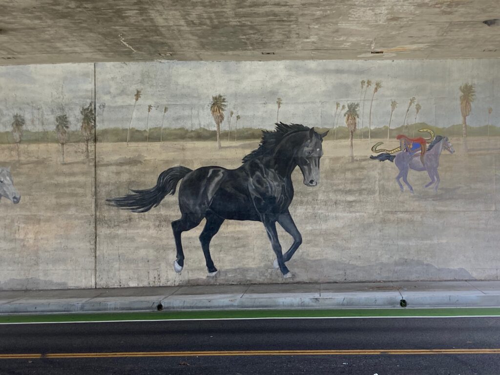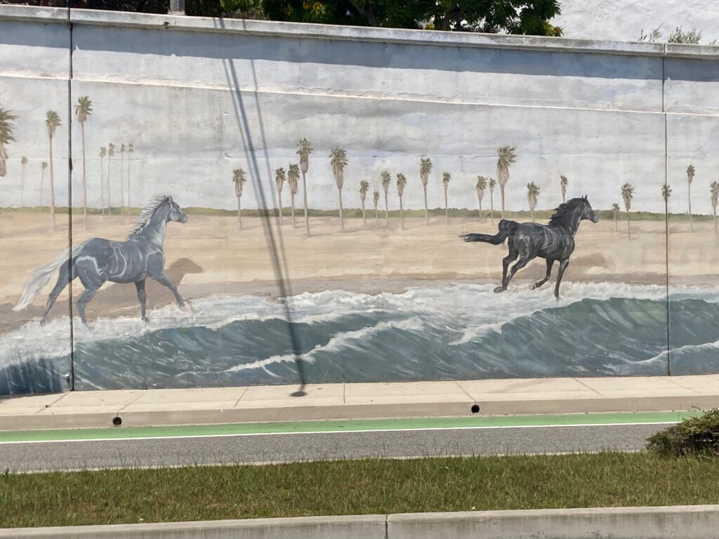 I lived in Ocean Park, California for 20 years and was a member of the Church in Ocean Park during much of that time.In the mid-1980s, two murals were painted on the sidewalls of the embankments supporting the Fourth Street overpass at Ocean Park Boulevard. About four blocks of Ocean Park Boulevard had traffic detoured to side streets when the murals were finished so that all of us living in Ocean Park could celebrate their completion and what they stood for.