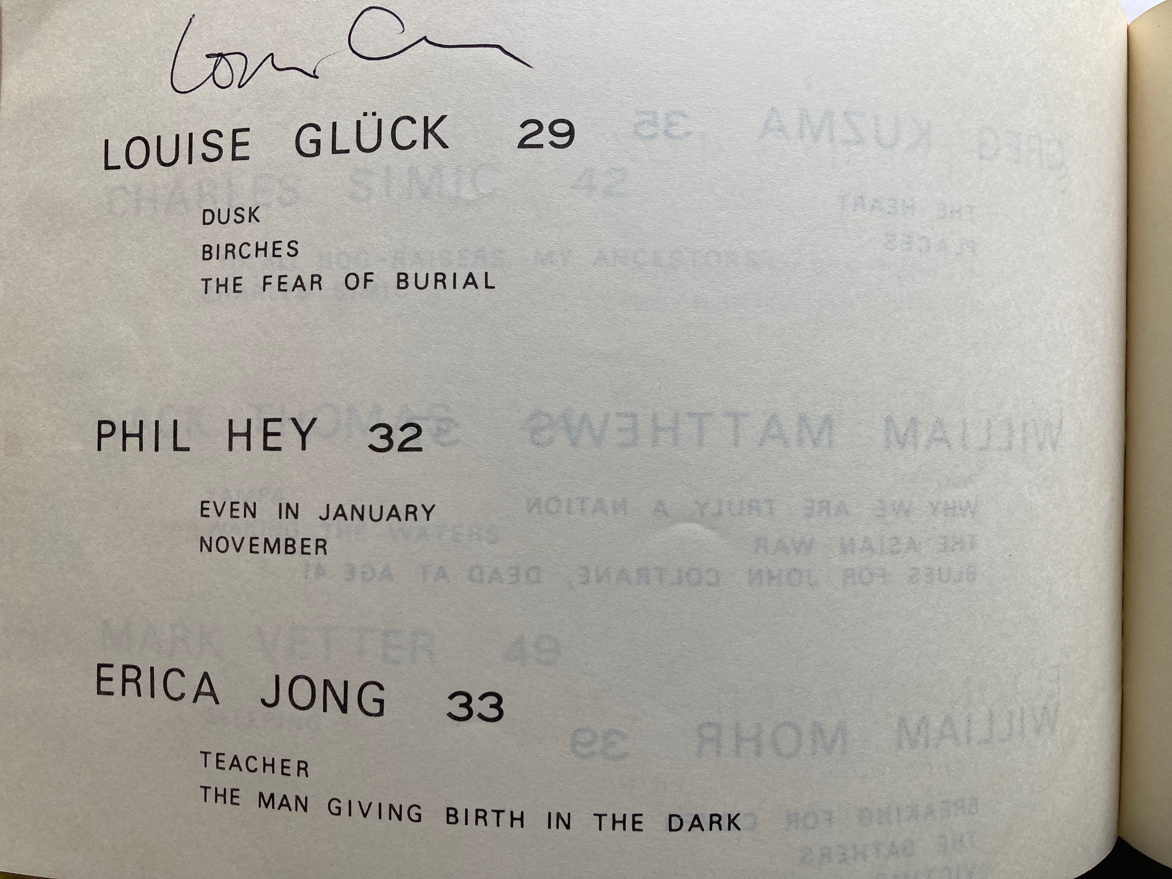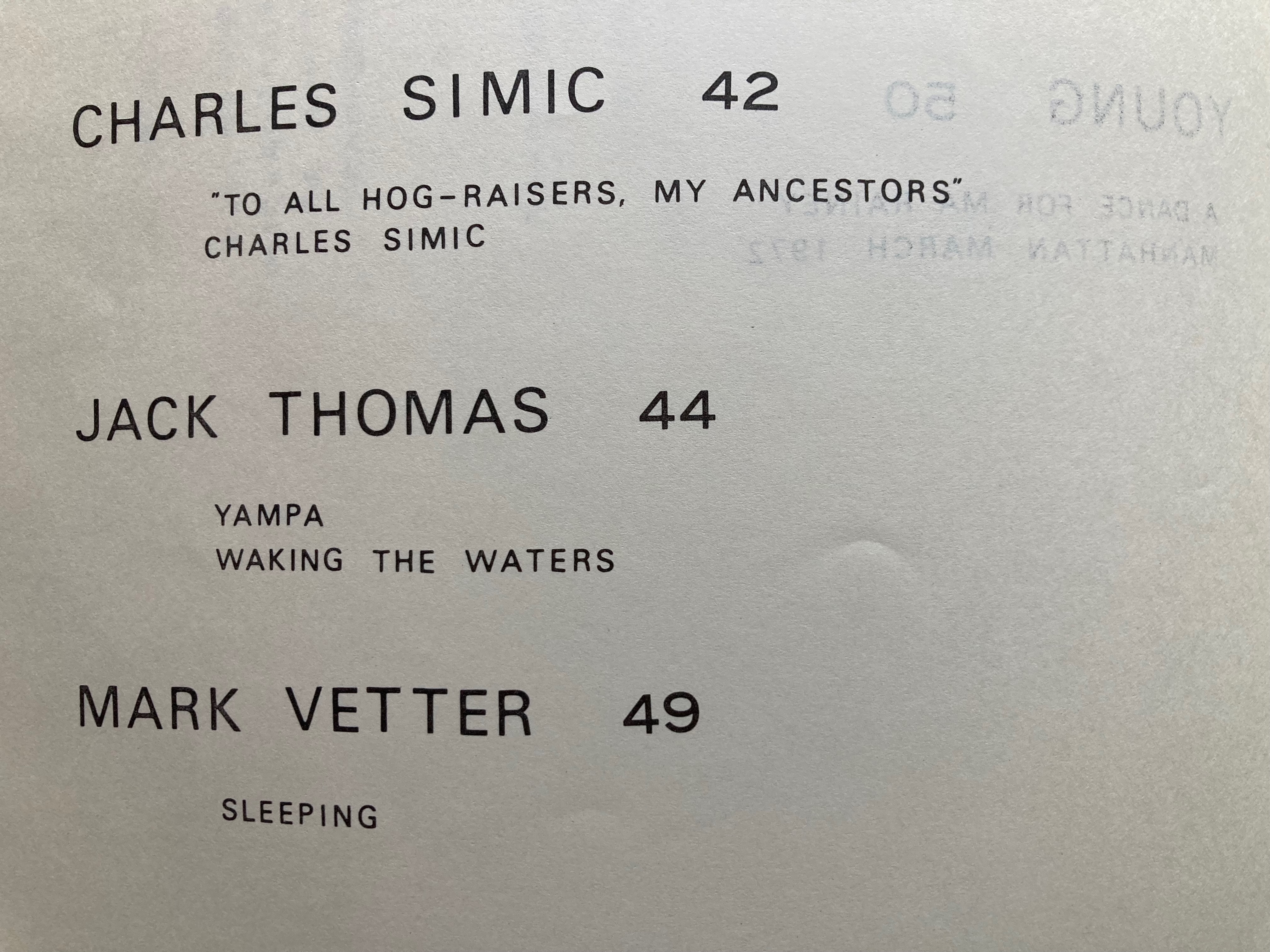 The year before Bob’s anthology came out, I had had a poem in Lawrence Spingarn’s anthology, POETS WEST, alongside poets such as Philip Levine, Gary Snyder, and Richard Hugo. Bob’s anthology, on the other hand, featured young poets who were well known on the East Coast: Louise Gluck, Charles Simic, William Matthews, and as well as West Coast poets such as Al Young. I was not yet 30 years old, and was still primarily focused on writing plays, but was very encouraged to find my work juxtaposed with other poets whose work I admired. Bob’s anthology, however, included the thrill of being translated into a language with which I had no familiarity whatsoever.